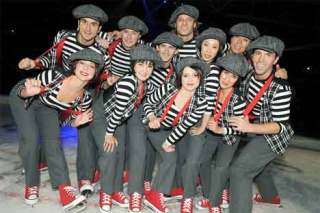Stars on Ice The all-star cast of Smucker's Stars on Ice 'On the Edge' tour stops for a photo op during practice. The figure-skating show — which features professional skaters such as Sasha Cohen