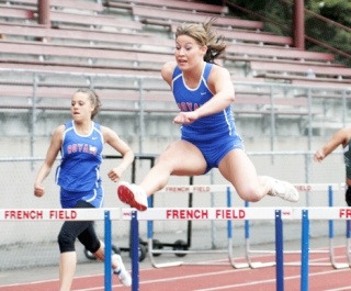 High jump: 1, Melanie Vertrees, Kent-Meridian, Lindsey Moore, Kentwood, 5-7.