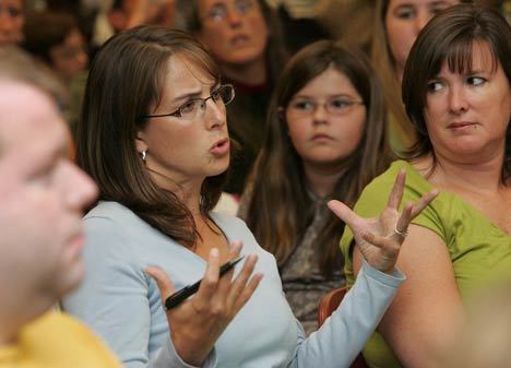 Led by Cara Haney, a Kent Education Association member and teacher at Panther Lake Elementary School, attendees – who seemed to be split nearly 50-50 between parents and teachers – were shown a short slide show of teacher concerns followed by questions.