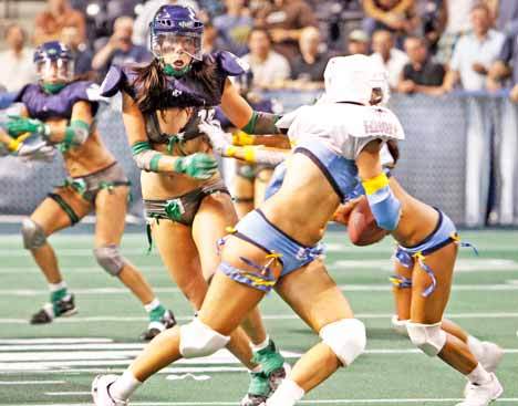 The Seattle Mist defeated the San Diego Seduction 20-6 at the ShoWare Center. The 10-team league features scantily clad women playing seven-on-seven tackle football on a 50-yard field.