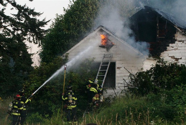 When Kent firefighters first arrived, they found the abandoned two story house with flames coming from several areas.