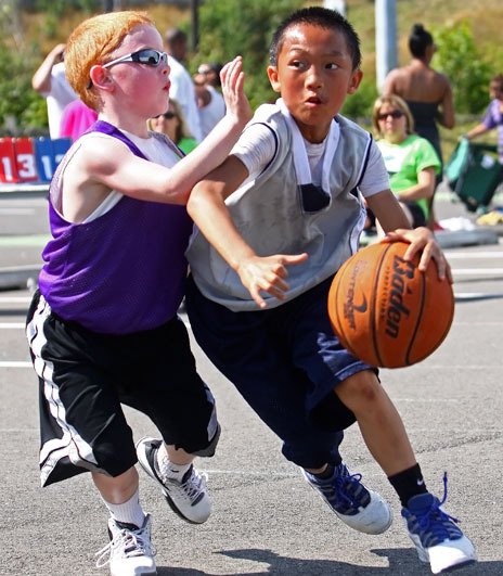 Basketball players of all ages filled up temporary courts at the ShoWare Center parking lot on Saturday and Sunday in Kent.