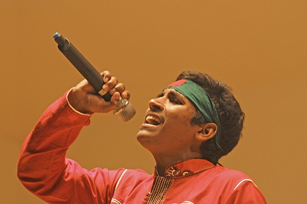 Ridoy Alom sings a patriotic song from Bangladesh during the Bangladeshi Community in the South Puget Sound cultural event at the Kent Senior Activity Center last Saturday night.