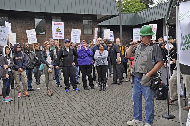 Attending Wednesday’s rally in support of faculty were: Karen Strickland, president of the American Federation of Teachers in Washington; Lynne Dodson, secretary and treasurer, Washington State Labor Council; and Adam Ziemkowski, legislative assistant to Seattle City Councilmember Kshama Sawant.