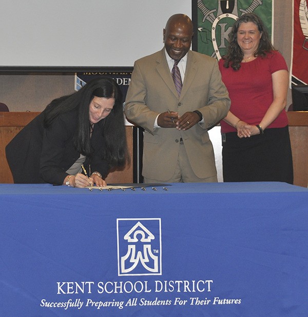 Representatives from the Kent School District and the college signed a memorandum of understanding on June 25 for the information technology pathway program.