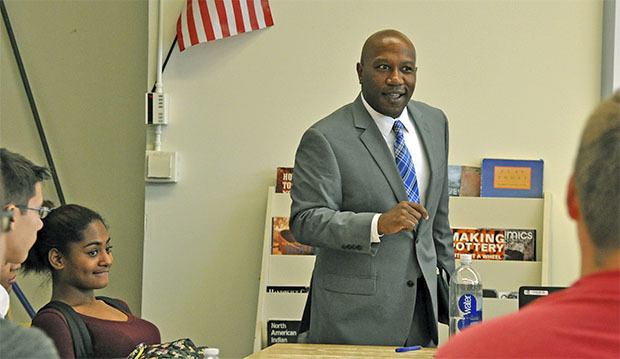 Watts’ next stop was Kent-Meridian High School, where he visited several classes, including art classrooms damaged by an Aug. 3 fire. The two-alarm blaze, which started outside of the building, heavily damaged two classrooms while another classroom, a workroom, and the hallways, had minor damage.