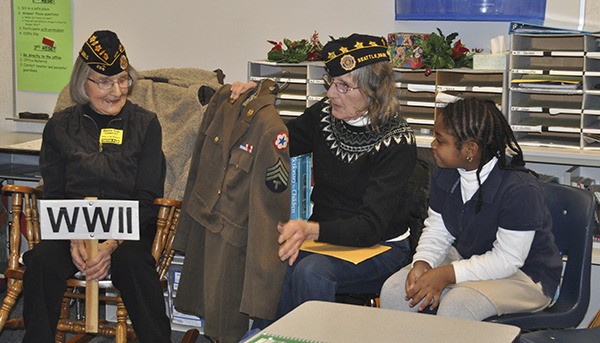 Second-graders in Kathy Kier’s class at Meadow Ridge Elementary School in Kent got a living history lesson on Monday when two World War II veteran’s paid them a visit.