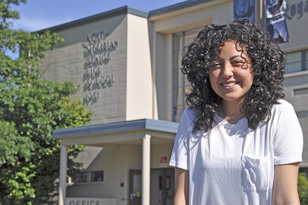 Kent-Meridian High School senior Maria Jose credits Elisa Aguayo, Communities in Schools site coordinator, with helping her stay on track to graduate.