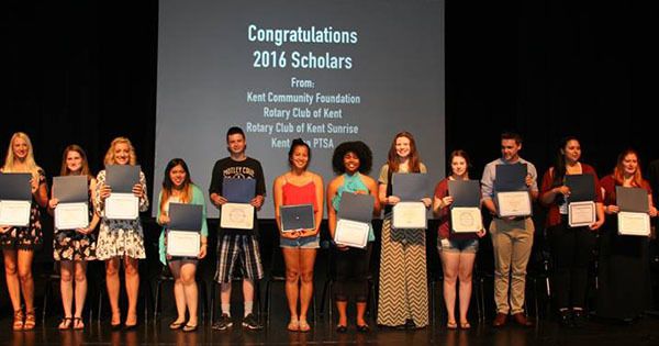 Four organizations – the Kent Community Foundation (KCF), Rotary Club of Kent, Kent Area PTSA Council and Rotary Club of Kent Sunrise – recently awarded 33 Kent students with 34 scholarships for post-secondary education totaling $46,350.