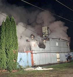 Smoke shoots from an abandoned commerical building Monday night in the 200 block of East Morton Street in Kent. Courtesy Photo/Kent RFA