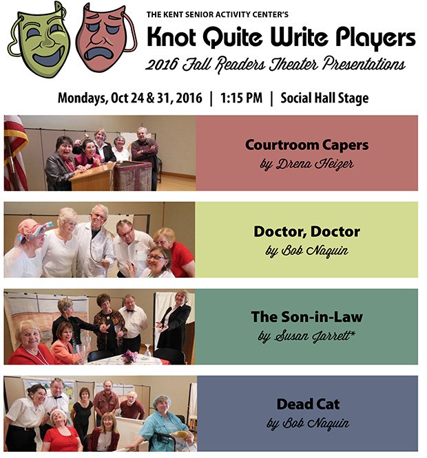 The Kent Senior Activity Center’s Readers Theater troupe known as the Knot Quite Write Players continues its fall presentation on Monday, Oct. 31 at 1:15 p.m. on the Social Hall Stage.