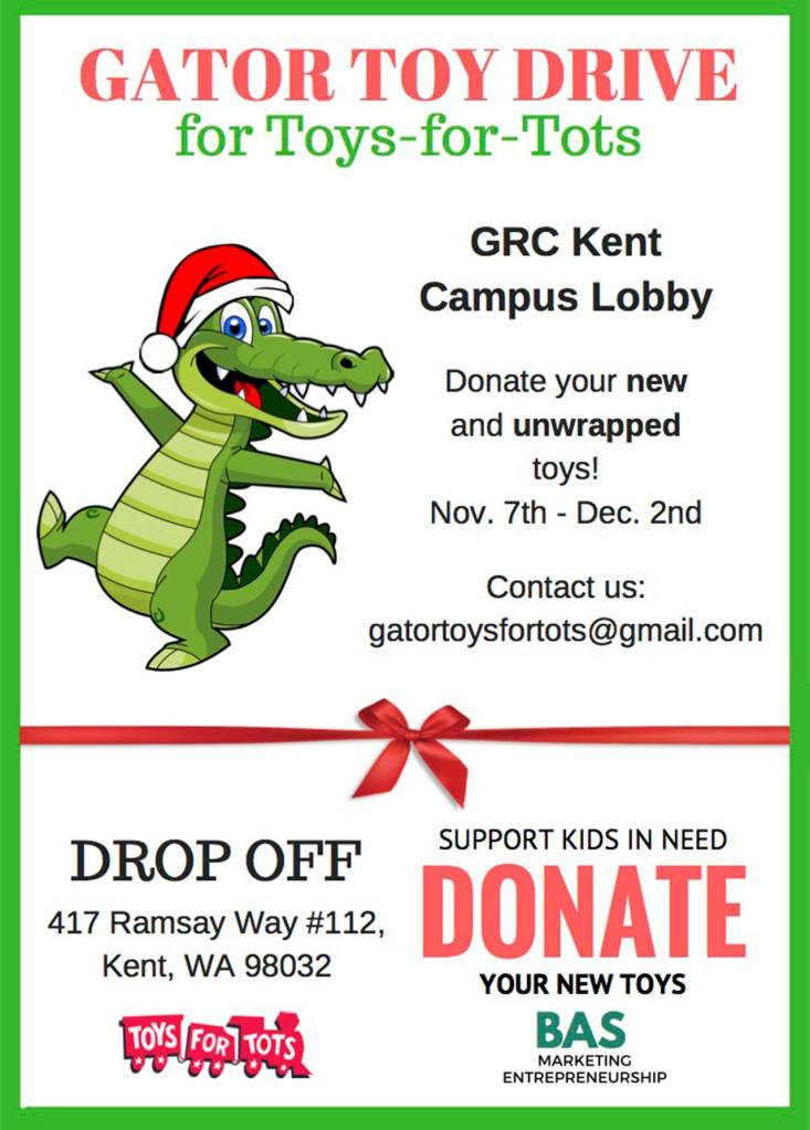 The BAS Marketing and Entrepreneurship Program at Green River College in Kent – in collaboration with Toys for Tots – is hosting a Toy Drive.