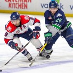 Seattle answered right back 21 seconds after Lethbridge’s goal when Scott Eansor beat Skinner with a wrist shot from the left circle. Sami Moilanen chased the puck down the left wing behind the goal line. Moilanen centered the puck to Eansor to set up Eansor’s leading ninth goal of the season.