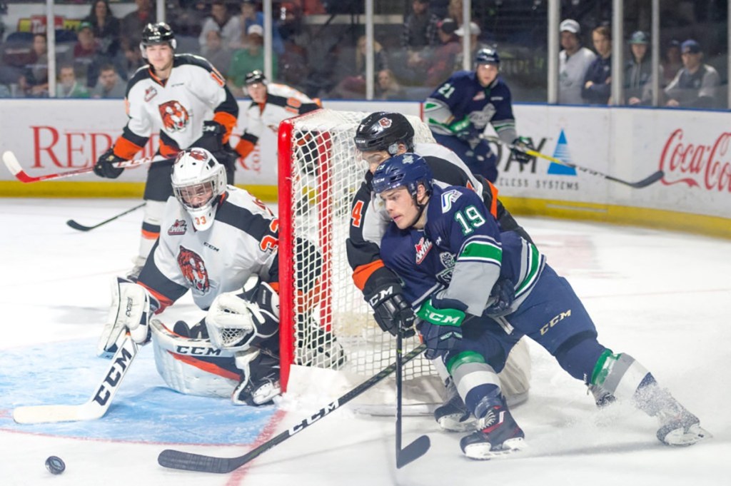 First period – 1, Seattle, Gropp 7 (Wedman, Barzal), 1:27. 2, Seattle, Gropp 8 (Barzal, Ormsby), 10:46. 3, Seattle, Bear 10 (Volcan, Barzal), 17:57. Penalties – Barzal, Sea (slashing), 8:33. Harsch, Sea (holding), 12:58.