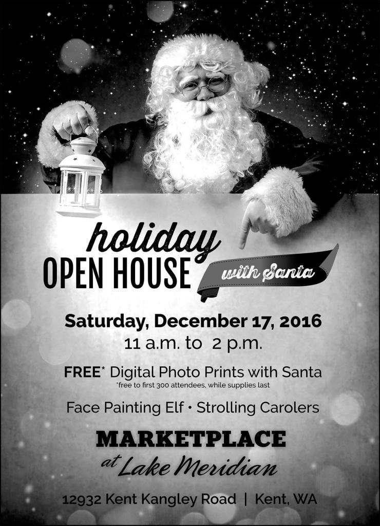 Santa is coming to Kent to take pictures with families at the local shopping center, Marketplace at Lake Meridian, on Saturday, Dec. 17, from 11 a.m. to 2 p.m.