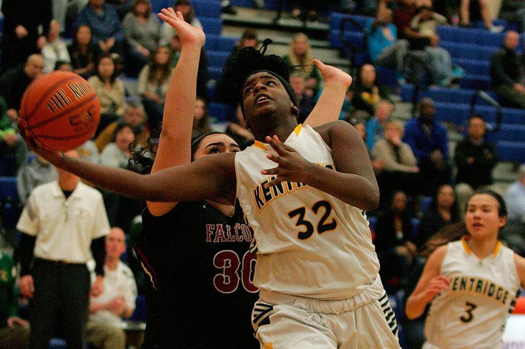 The Kentlake and Kentridge high school girls basketball teams battled for the 4A North Puget Sound League Cascade Division top seed Tuesday at Auburn Mountainview after the teams tied for first in the regular season. Kentlake came out with 34-26 victory securing the top seed going into the sub-district tournament Saturday.
