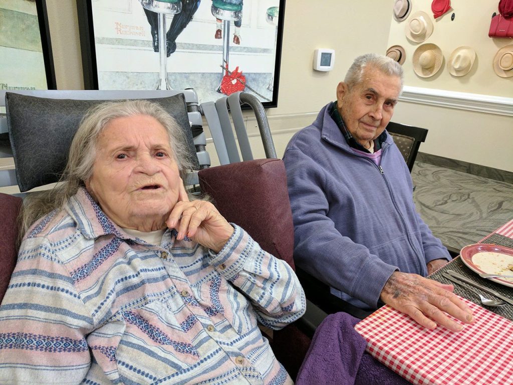On Valentine’s Day, they enjoyed a couples dinner at Aegis of Kent hosted by the facility’s enrichment team. Flowers, food and a harpist were there to entertain them for a special dinner for two.