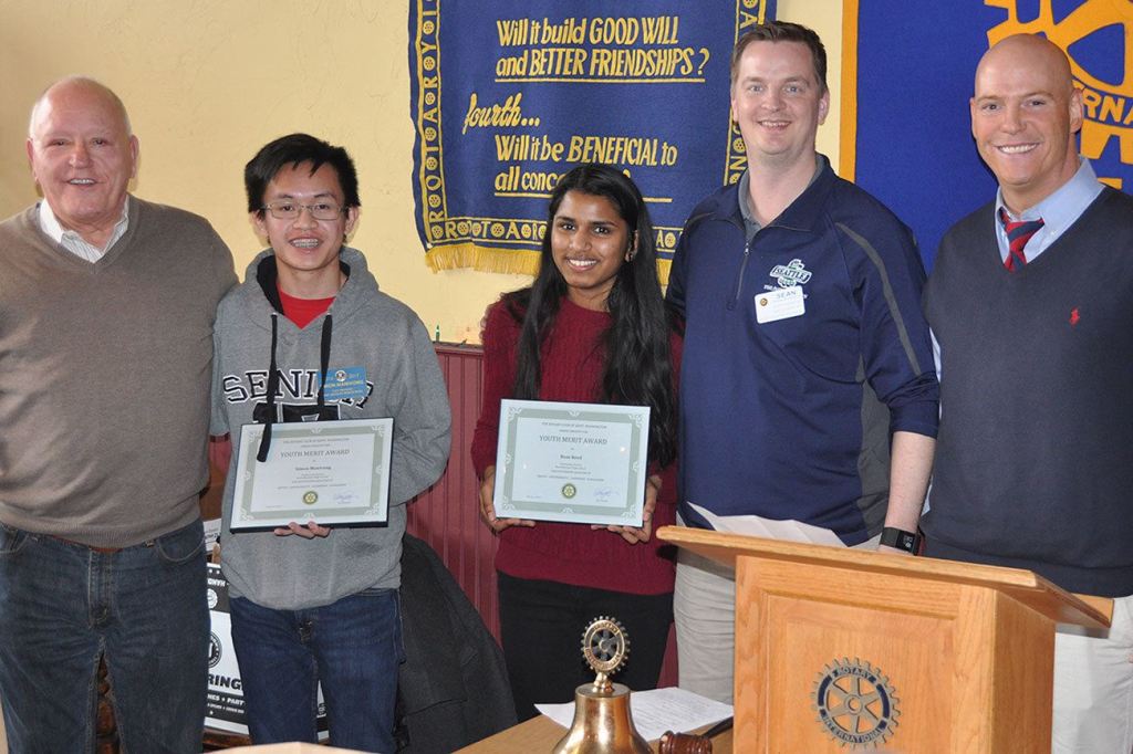 The (Noon) Rotary Club of Kent recently recently recognized its Students of the Month – Kent-Meridian High School’s Rose Reed and Simon Manivong – for their outstanding work in community service.