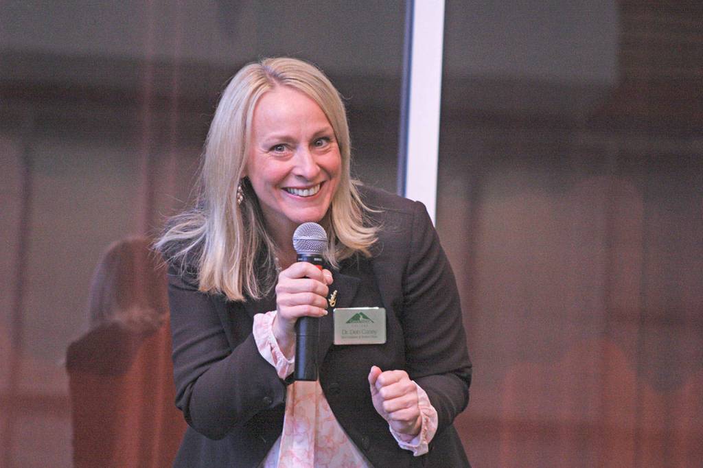 Deb Casey, Green River College’s vice president of student affairs, speaks to incoming students about the college experience and the many programs and resources the school provides. MARK KLAAS, Auburn Reporter