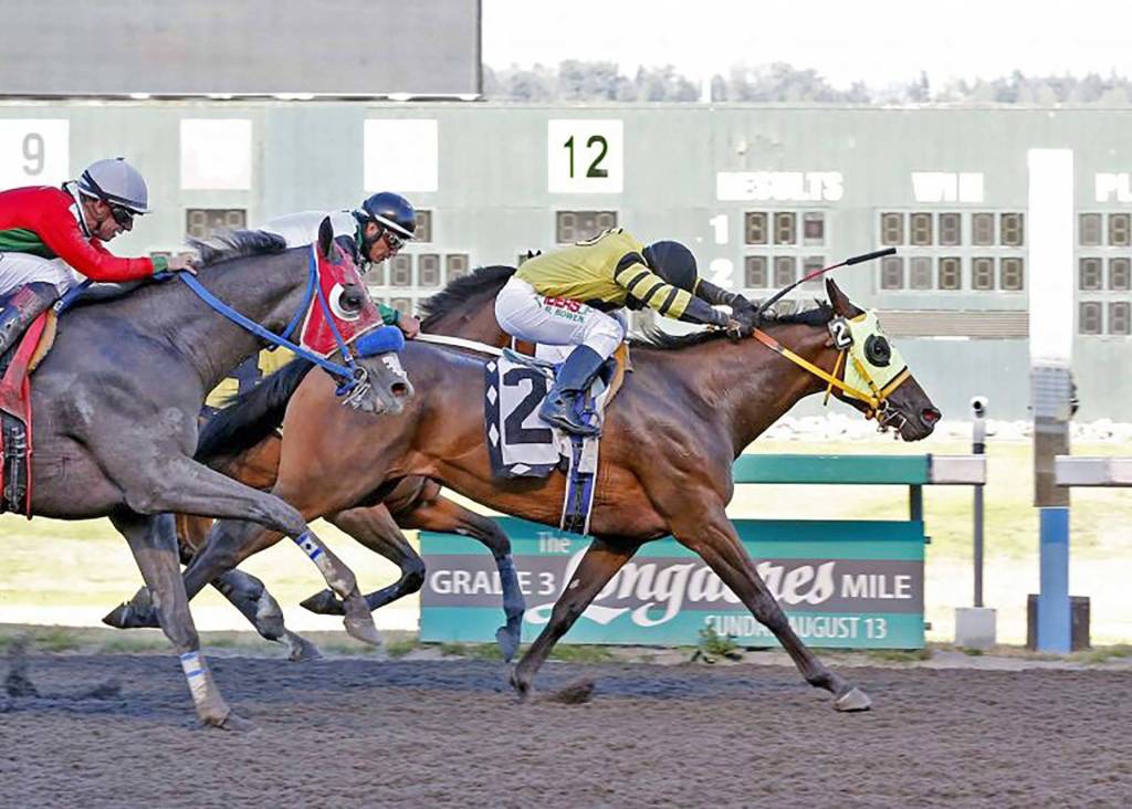 Alliford Bay, winner of the Seattle Stakes, and Risque’s Legacy, triumphant in the Kent Stakes, both sat out Sunday’s race. Alliford Bay defeated older fillies and mares Saturday in the $50,000 Governor’s Cup Handicap at Sacramento. Trained by Blaine Wright and ridden by Irving Orozco, the 3-year-old City Zip filly ran six furlongs in 1:09.54.