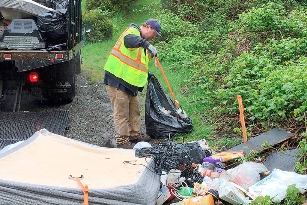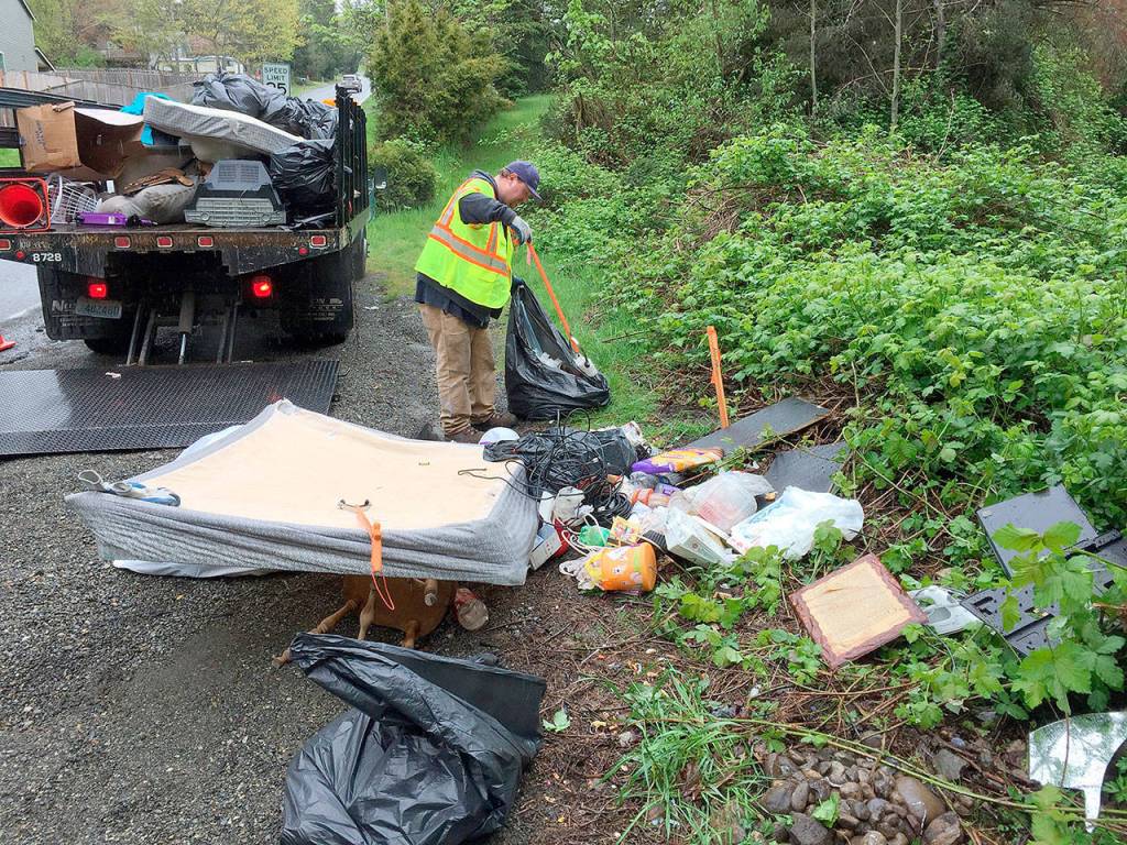 A three-man city Public Works maintenance crew has picked up 37 tons of garbage so far this year from Kent right-of-way properties. They have found furniture, televisions, appliances, construction debris and even boats.