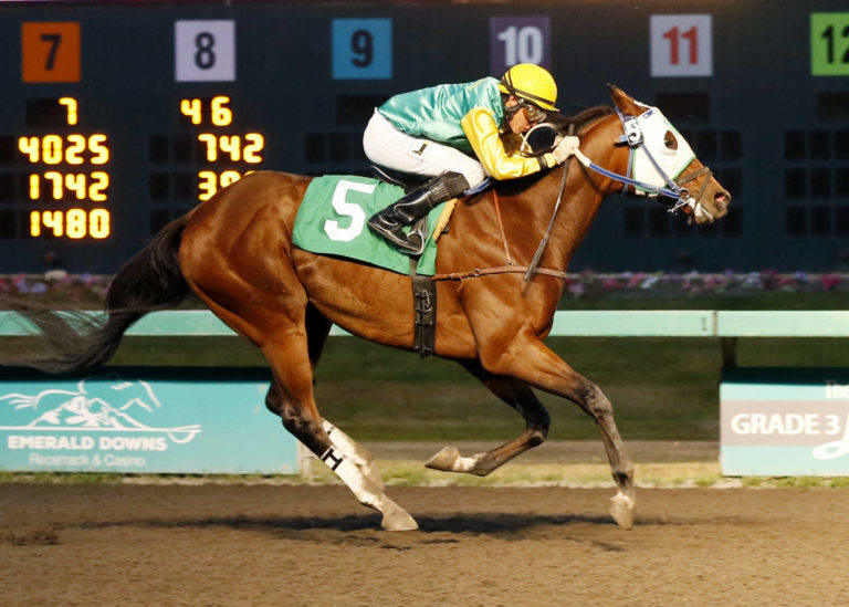 Blaine Wright needs just $933 in earnings to have the second highest total in track history. Doris Harwood with $931,916 in 2009 is No. 1 followed by Jim Penney with $793,760 in 2005 and Wright with $792,827. … Wright has three horses entered this weekend including Washington Cup Sophomore Stakes winner Pulpits Power in Sunday’s $21,000 allowance feature for 3-year-olds. … The following horses are all four-time winners this season for Wright: Bella Mia, Emmett Park, Maurice Code and Oh Marvelous Me, and Exit Sixty Slew and First Heritage have each won three races. … Wright also has been red-hot with jockeys Julien Couton (17-39), Kevin Orozco (13-27) and Eswan Flores (7-11). … Recent allowance winner and Emerald Downs Derby fourth-place finisher Monydontspenitself will be shipped to trainer Mark Glatt in California, trainer Kay Cooper said. … The richest racehorse in Washington history – Heza Dasha Fire – continued his winning ways recently at Los Alamitos. Owned by Don and Kathy Meneely of Kennewick, Heza Dasha Fire rolled to a 1¾-length victory in the Grade 1 Go Man Go Handicap and now has career earnings of $1,989,237. A 5-year-old gelding by Walk Thru Fire-Dasha Freda, Heza Dasha Fire is 14-4-0 in 19 starts with eight stakes wins.