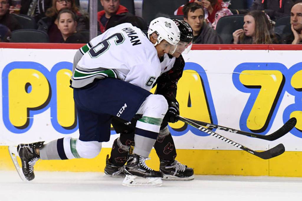 The T-Birds scored three goals in the second period. The Hitmen scored three goals in the third period before Strand’s game winner.