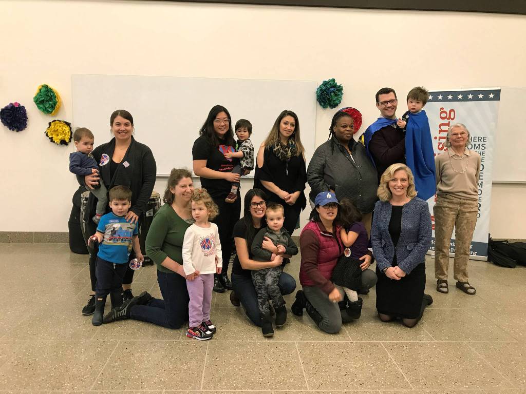 Moms, dads, children and family members gathered with state Sen. Joe Fain, R-Auburn, at Green River College on Sunday to celebrate the recent passage of paid family and medical leave in the Legislature.