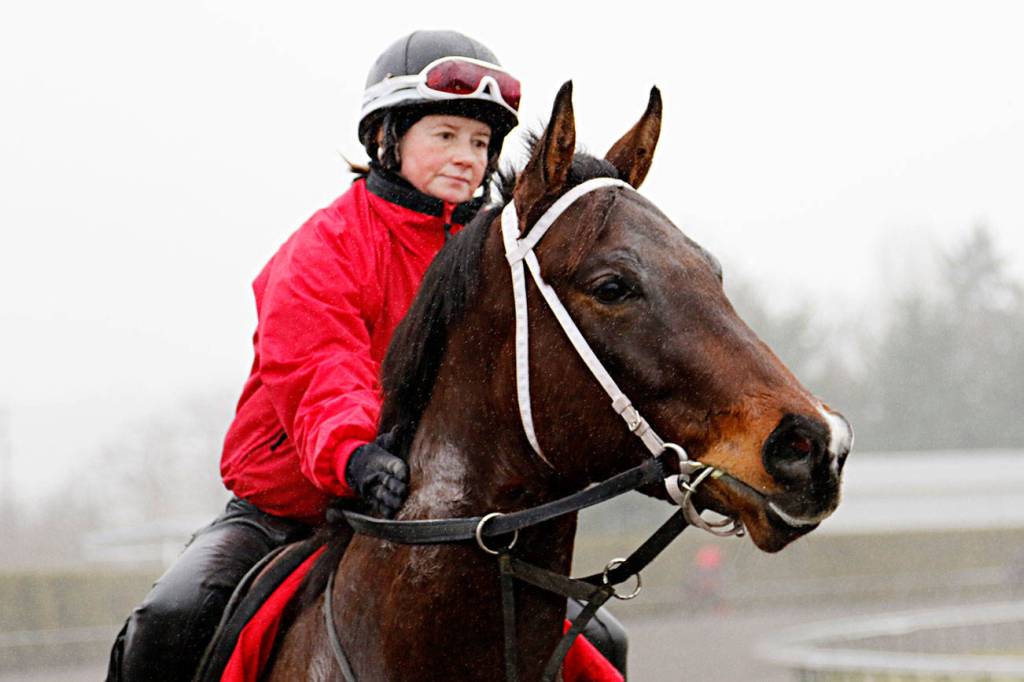 Elliott Bay, under Jennifer Whitaker, became the first horse on the track at 8:30 a.m. The track’s champion 2-year-old last year with a pair of stake wins and over $90,000 in earnings, Elliott Bay is trained by Howard Belvoir and owned by Rising Star Stable II.