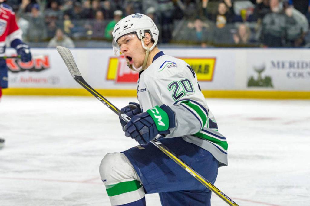 Seattle took a 1-0 lead at 5:19 of the first period. Jarret Tyszka took a shot coming down the right wing. Tyszka got his own rebound and curled into the right circle. Tyszka found Austin Strand at the right point. Strand fired a low wrist shot with traffic in front of Tri-City goalie Patrick Dea. Strand’s shot beat Dea low on the glove side.