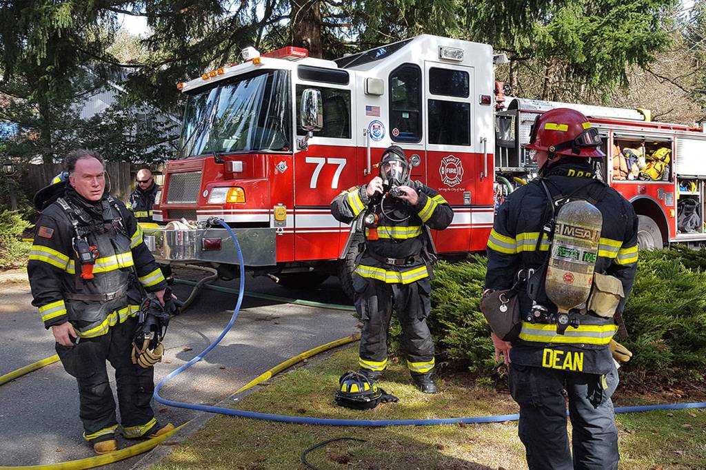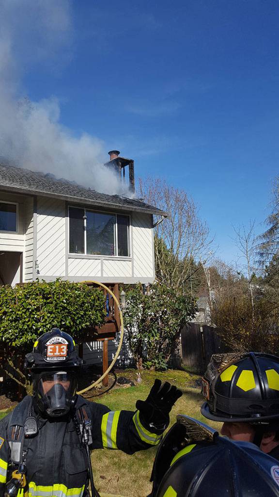 Firefighters put out a house fire that started in the chimney box and extended into the attic on Kent’s East Hill late Monday morning. COURTESY PHOTO, Puget Sound RFA