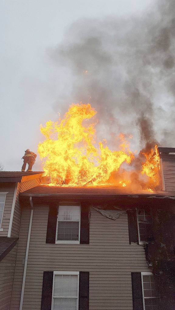 Firefighters arrived as the fire was burning at the eves of the roof and moving into the attic space through the “bird blocks” which provide for attic ventilation. Water was quickly applied to the exterior of the building but the fire had moved into the attic space and was beginning to grow. Additional units moved into the upstairs unit and began to aggressively fight the attic fire.