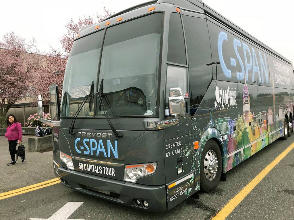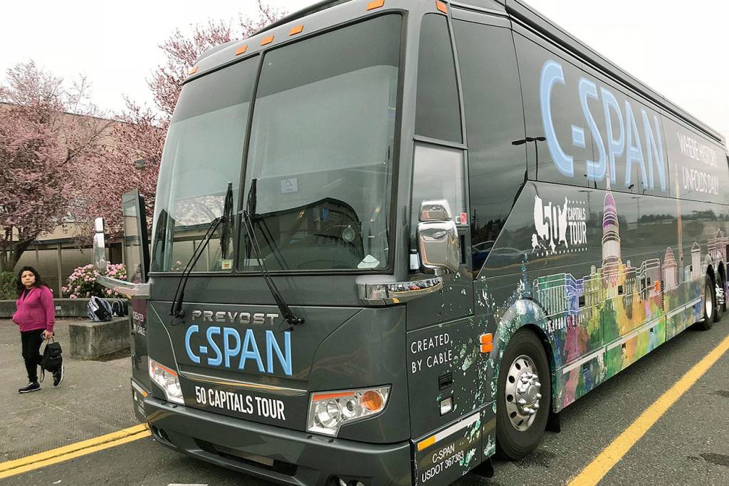 The C-SPAN Bus is on a 14-month trip to visit all 50 state capitals to engage with teachers, students, elected officials and viewers to showcase the network’s multi-platform public service resources. Olympia and the stop in Kent represented the halfway point of the journey.