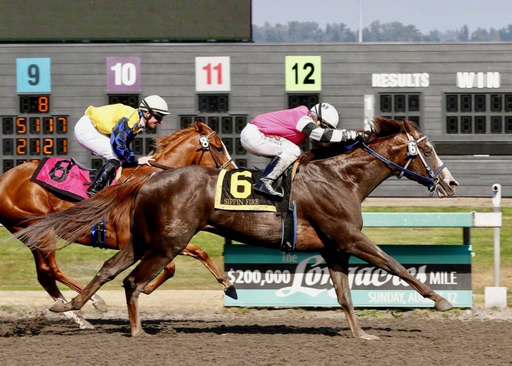 And with the victory, Sippin Fire remains eligible for a $100,000 bonus to any horse that sweeps the Muckleshoot Derby, $150,000 British Columbia Derby (Sept. 8) and $100,000 Getaway Stakes (Sept. 23).