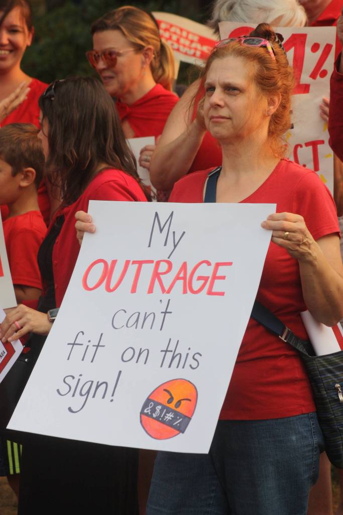 “I’ve been here 27 years and I have never seen anything like this,” KEA President Christine Padilla told the throng at the rally Wednesday. “I speak with district administrators making over $200,000 a year. They put us in this mess and yet they want to deny us (a living wage).