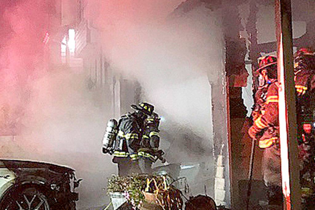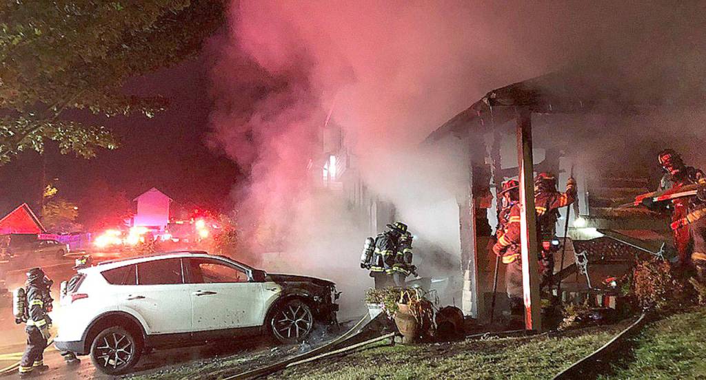 When firefighters arrived, they found flames coming from the entire front of the two-story house and both cars in the driveway burning. The fire was upgraded to a second alarm to bring in additional firefighters.