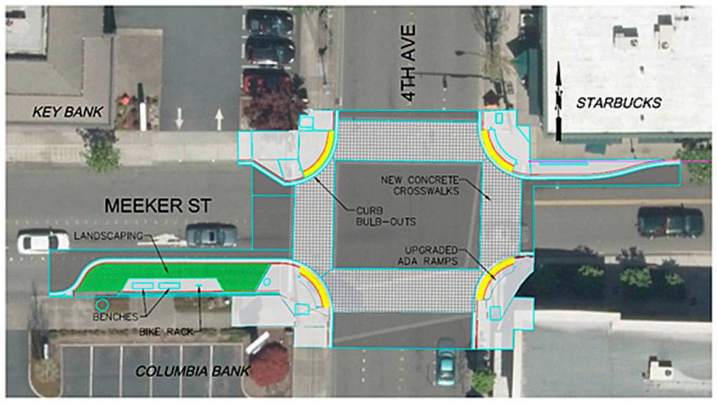 The cost of the Fourth and Meeker intersection work is approximately $580,000, with $250,000 coming from a grant from the Washington State Improvement Board’s Complete Streets program, according to a city news release. The balance will be paid for out of the city’s street funds.