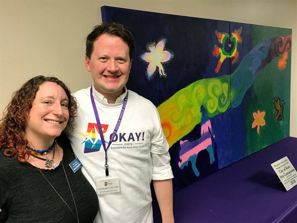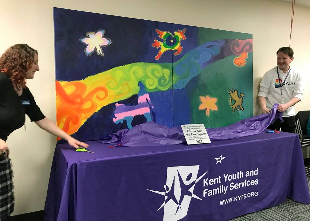 Such is how Will Haggerty described a mural, a public art project inspired, designed and created by OKAY! (Outreach for Kent Area Youth) – a Kent Youth & Family Services program that provides an open support group for kids 13-19 who identify as LGBTQ+.