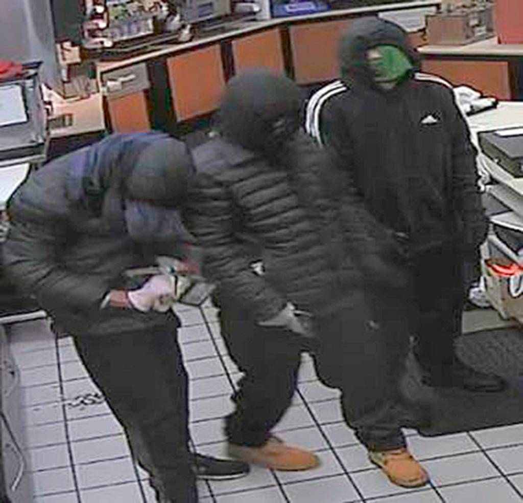 In review of video surveillance footage, the suspects wore dark clothing, masks and gloves.