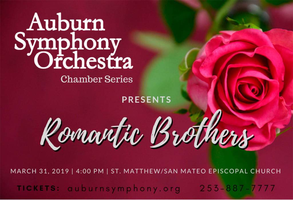 The Auburn Symphony Orchestra performs Romantic Brothers, an intimate chamber music experience, at 4 p.m. Sunday, March 31, at St. Matthew/San Mateo Episcopal Church, 123 L St. NE, Auburn.