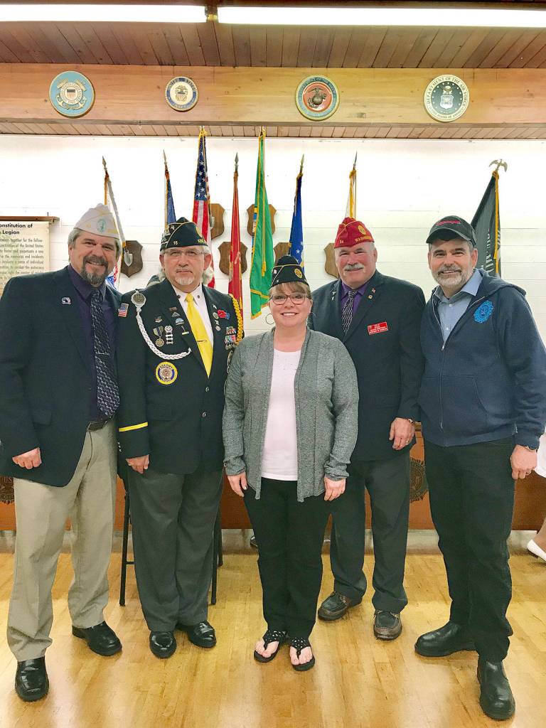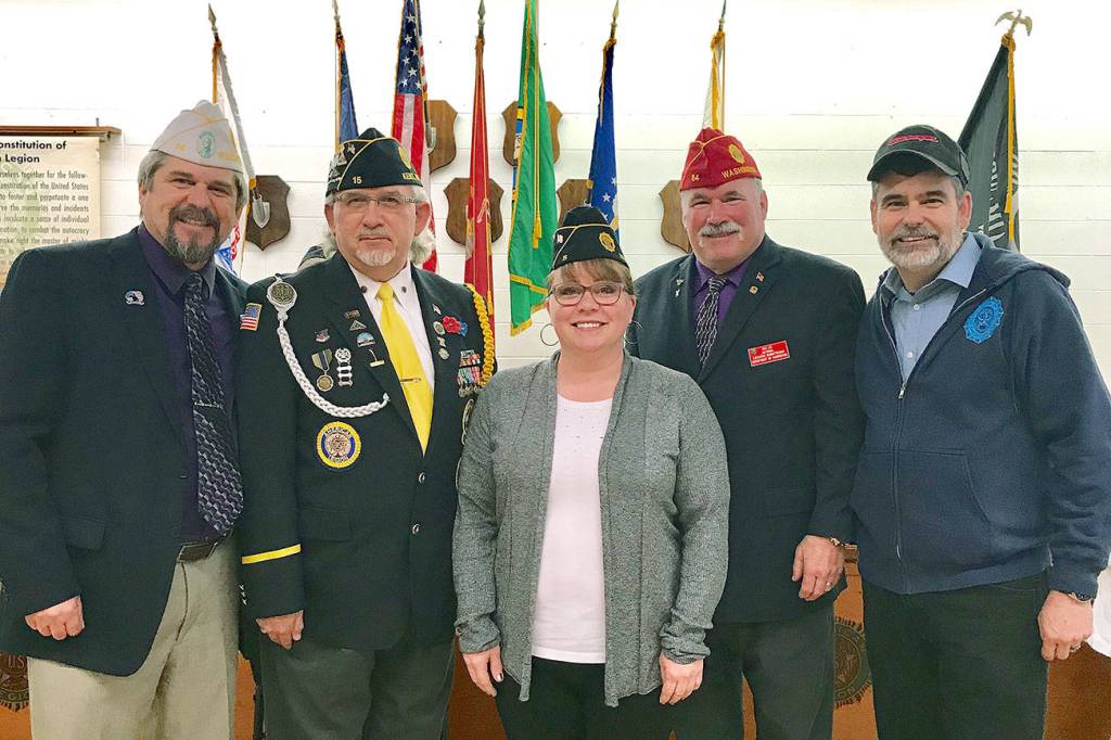 Those who attended were, from left: Gary W. Roach, department commander, the American Legion Department of Washington; Chriss R. Moen, American Legion member Post 15, Kent; Debi Lovelace, American Legion member Post 15; Ken Lee, Western Region national vice commander of the American Legion and national executive committee member, Department of Washington; Robert “Bob” Clark, commander, Sons of the American Legion Detachment of Washington State and life member and 10th District vice commander, the American Legion.