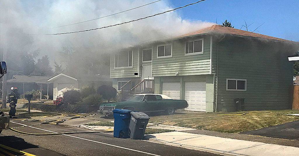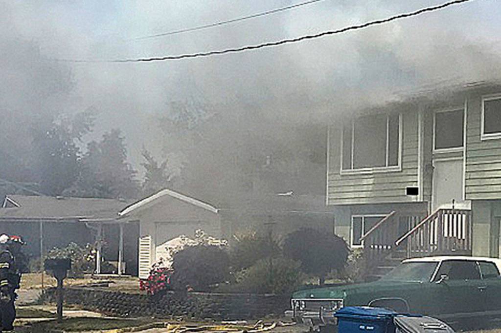 The fire was reported at 12:43 p.m. When firefighters arrived, there were large amounts of fire and smoke from the back of the two-story house, according to a Puget Sound Fire news release. Fire had entered both floors through glass sliders and had also gotten into the attic space through the bird blocking.