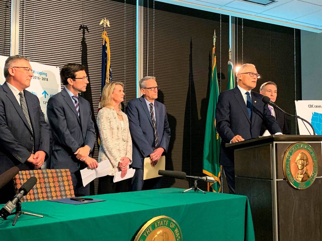 Gov. Jay Inslee announced an executive order at a Seattle press conference Friday that changes how agencies will regulate, monitor and communicate about a variety of vaping products.