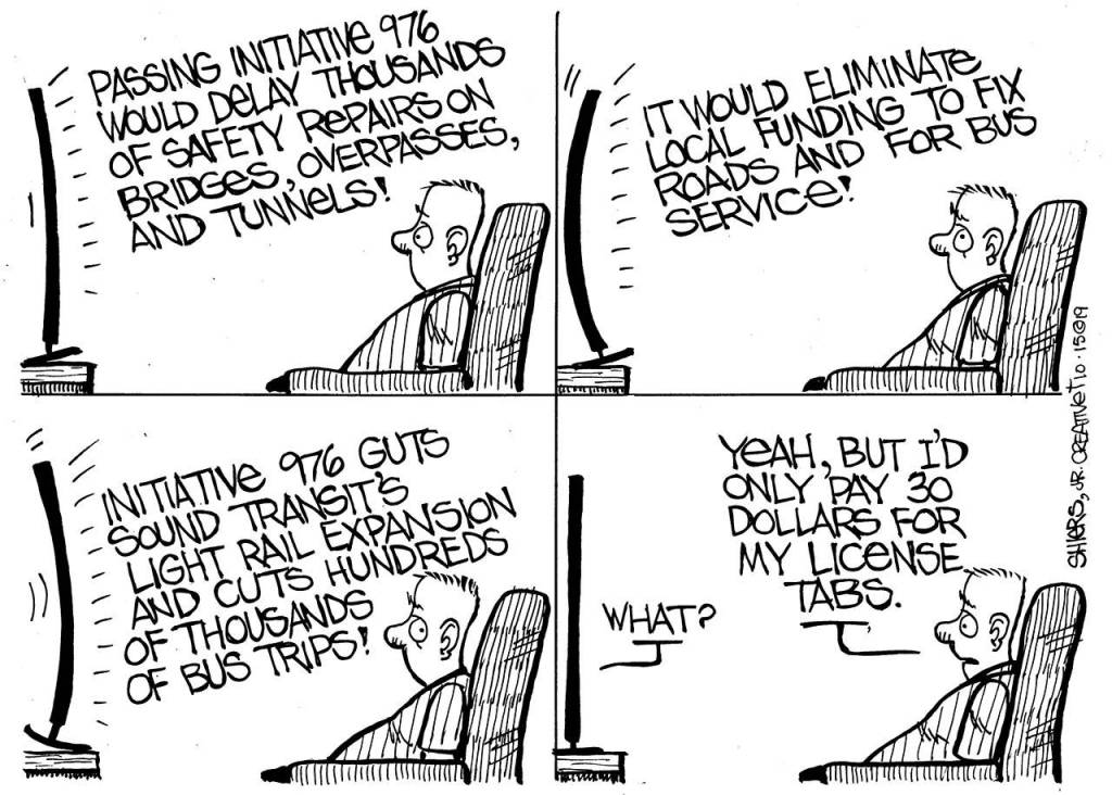 Voters outside the Puget Sound will see Initiative 976 on the ballot and think the debate is on lowering car tabs versus fixing roads, repairing bridges and saving lives.