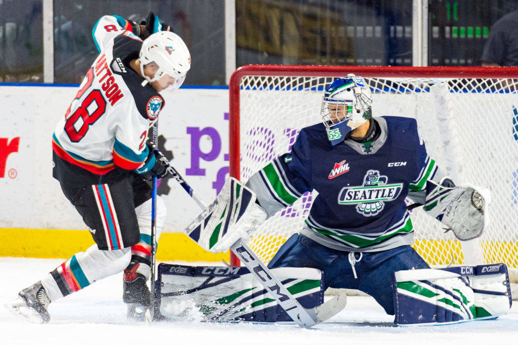 Shots on goal – Seattle 10-15-14 39, Kelowna 7-7-15 29. Goalies – Seattle, Ross 29 shots-26 saves (6-8-2-1); Kelowna, Schwebius 39-37 (3-3-0-0). Power plays – Seattle 1-5; Kelowna 1-4. Referees – Ryan Benbow, Ryan O’Keeffe. Linesmen – Kris Delaney, Justin Nicol.