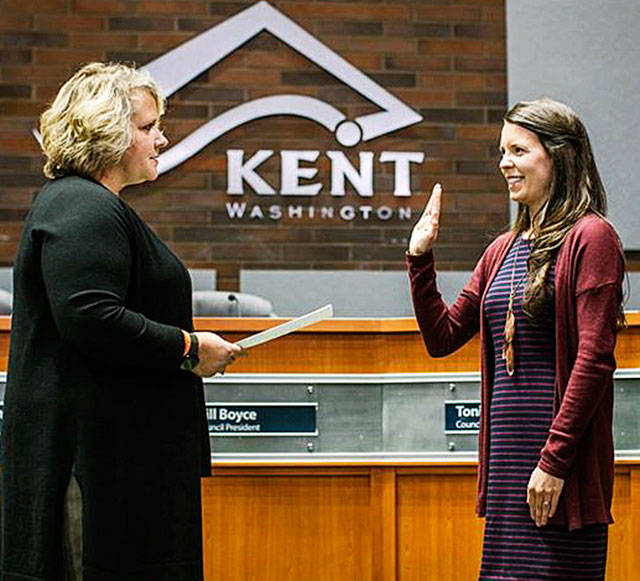 Mayor Dana Ralph swore in Michaud in Council Chambers after King County Elections certified the Nov. 5 general election results. Michaud received 58 percent of the vote to defeat Awale Farah. She won despite being outspent during the campaign $57,305 to $8,592, according to the state Public Disclosure Commission.
