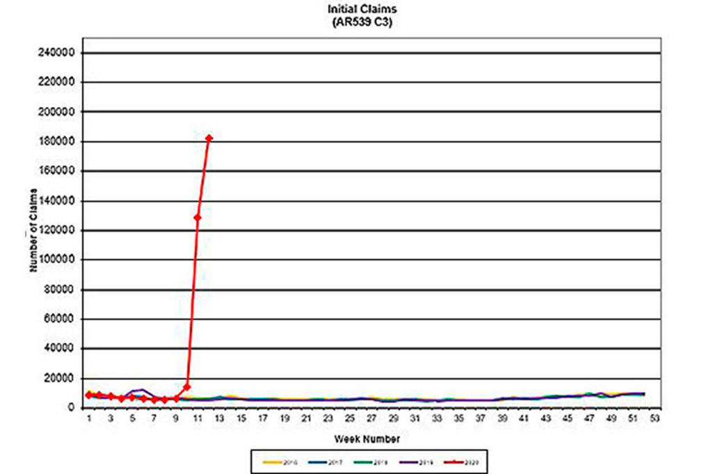 In an April 2 press release, the ESD said claims for benefits “soared to a record 181,975 for the week of March 22-28,” a 3,513% increase over the last year.