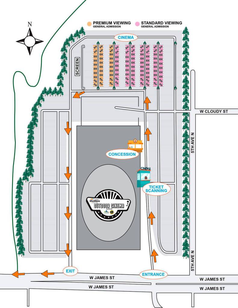 Tickets are $40 per vehicle for premium general admission and $30 for general admission. The number of seat belts per vehicle denotes how many passengers will be allowed to each showing. Motorcycles are $20. There are 95 vehicle spots available per showing. No RVs will be allowed. All parking is first-come, first-served in the two sections.