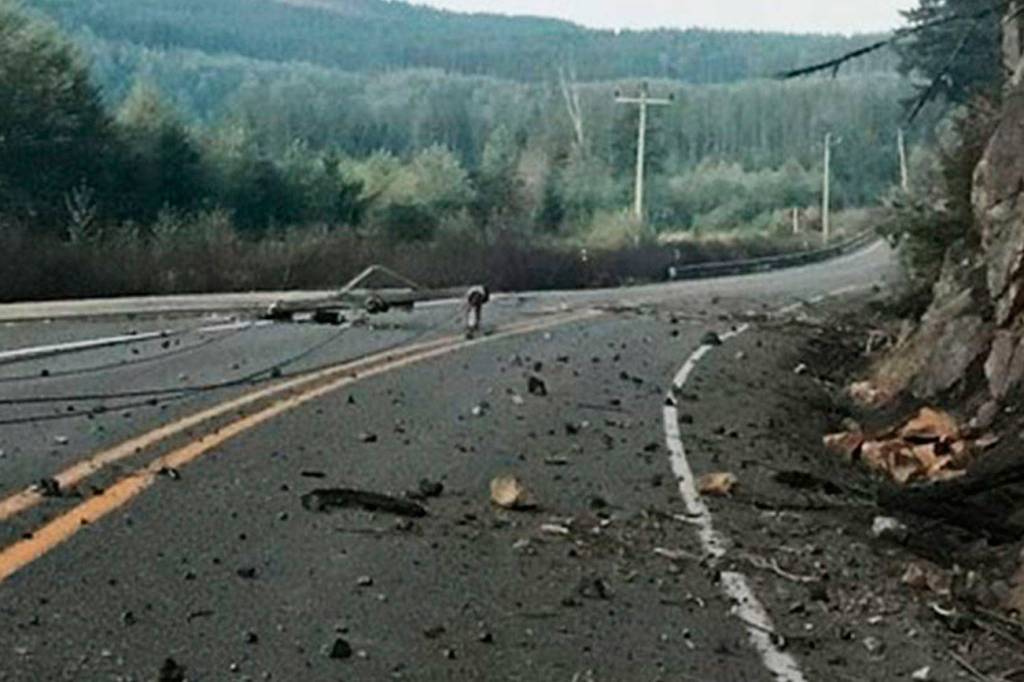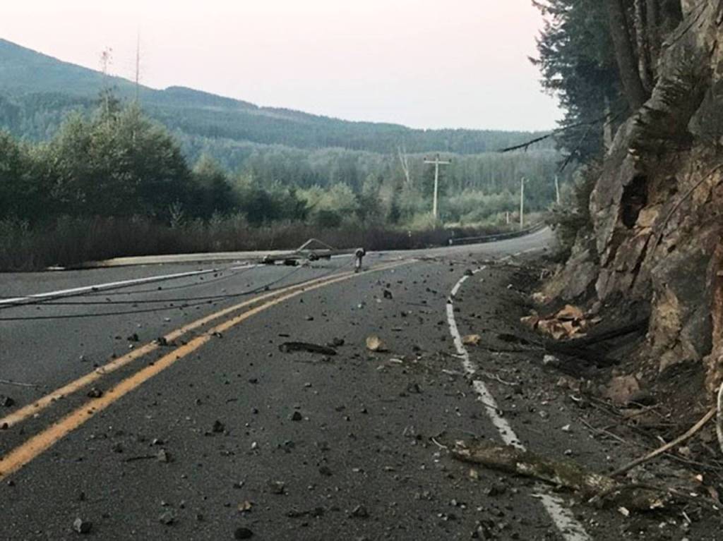 The wildfire burned and weakened trees and roots, loosening rock and debris from the hillside. The trees and large rocks continue to fall to the roadway below, creating unsafe travel conditions for the 14-mile section of SR 410.