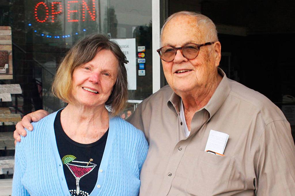 Steve and Jeannine Dowell stand outside the entrance Monday to Dowell Co., along Central Avenue North in Kent, just north of James Street. They have sold the store after more than 50 years in business. STEVE HUNTER, Kent Reporter